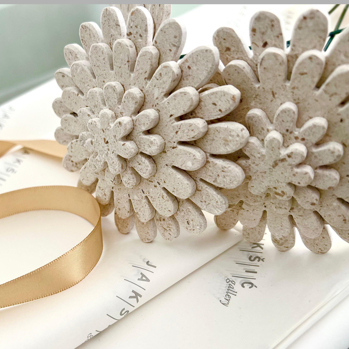 Kroz godine smo razvili širok spektar oblika i varijanti – od pojedinačnih cvjetova do bogatih aranžmana koji u potpunosti ispunjavaju vaze. Posebno mjesto zauzima kamena krizantema za grobnicu, cvijet koji tradicionalno simbolizira sjećanje, poštovanje i trajnu povezanost s voljenima. Upravo zato krizantema u kamenu postaje idealan izbor za groblje – zadržava simboliku prirodnog cvijeta, ali bez potrebe za održavanjem.