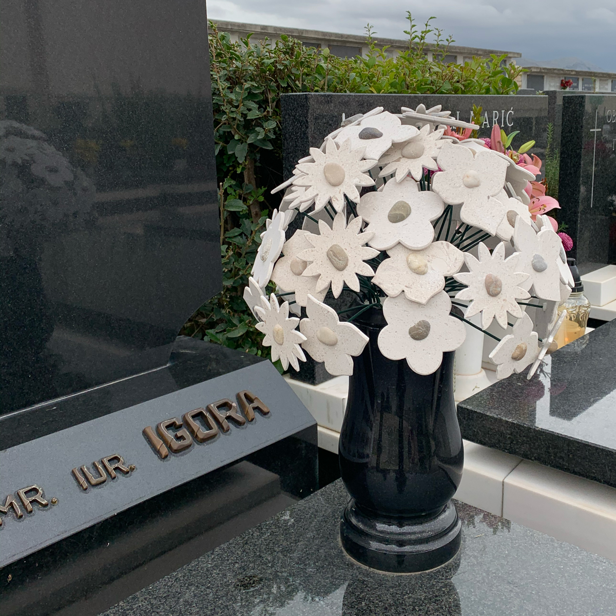 Bez obzira tražite li trajni aranžman za grob, kamene cvjetove za groblje, dekoraciju za grobnicu ili elegantno i dugotrajno rješenje koje će dostojno obilježiti mjesto sjećanja – naš kameni cvijet nudi spoj umjetnosti, tradicije i trajnosti. Svaki komad izrađen je ručno u našim ateljeima i radionici, s posebnom pažnjom prema detalju, kako bi zadržao ljepotu i simboliku cvijeta kroz godine.