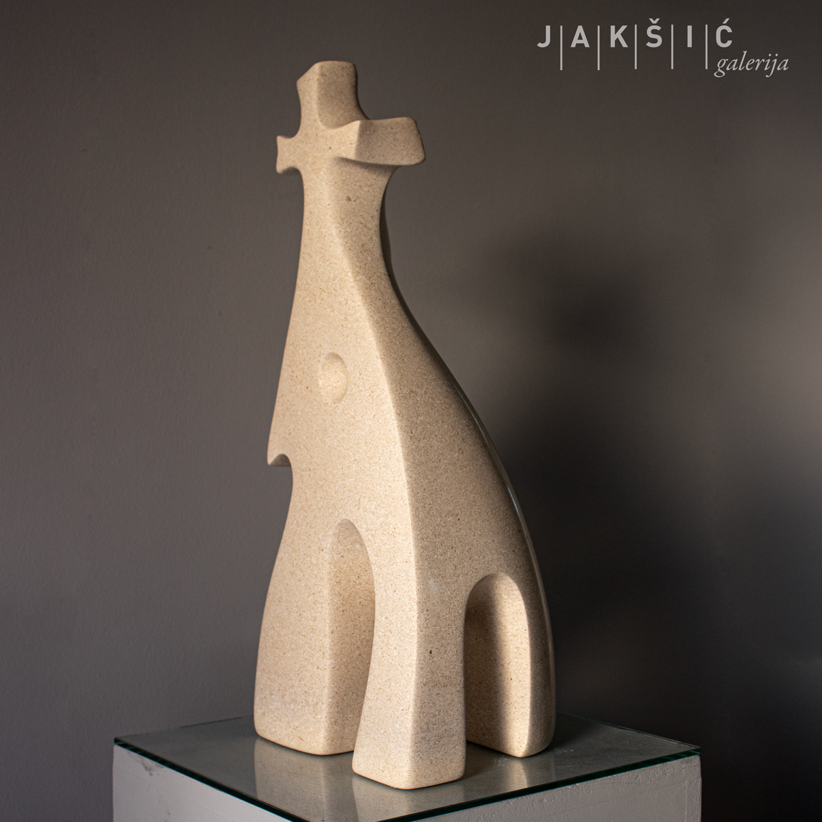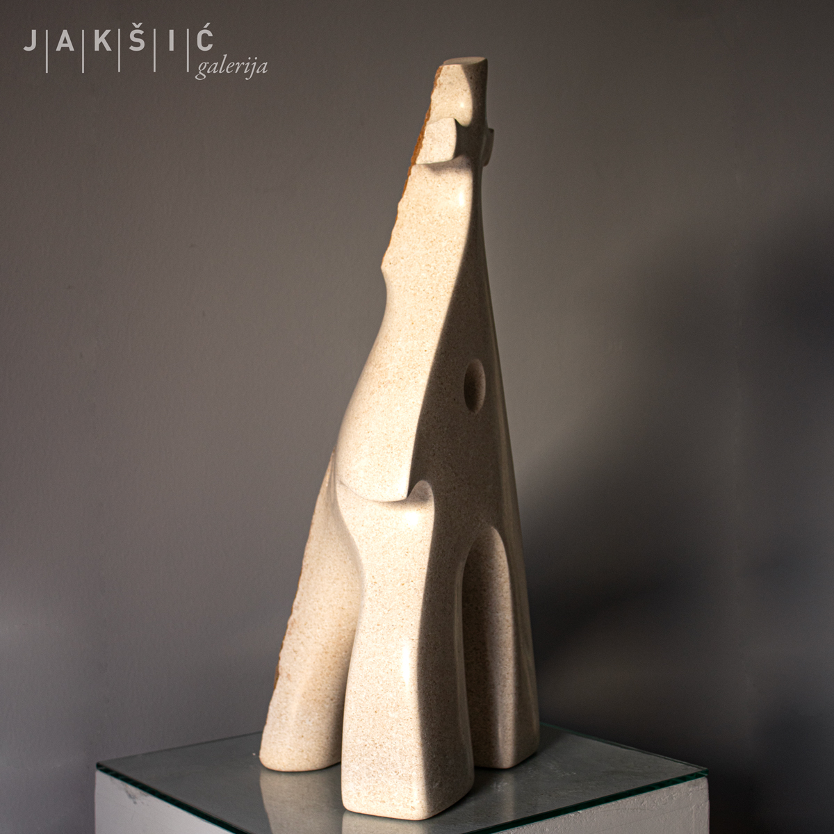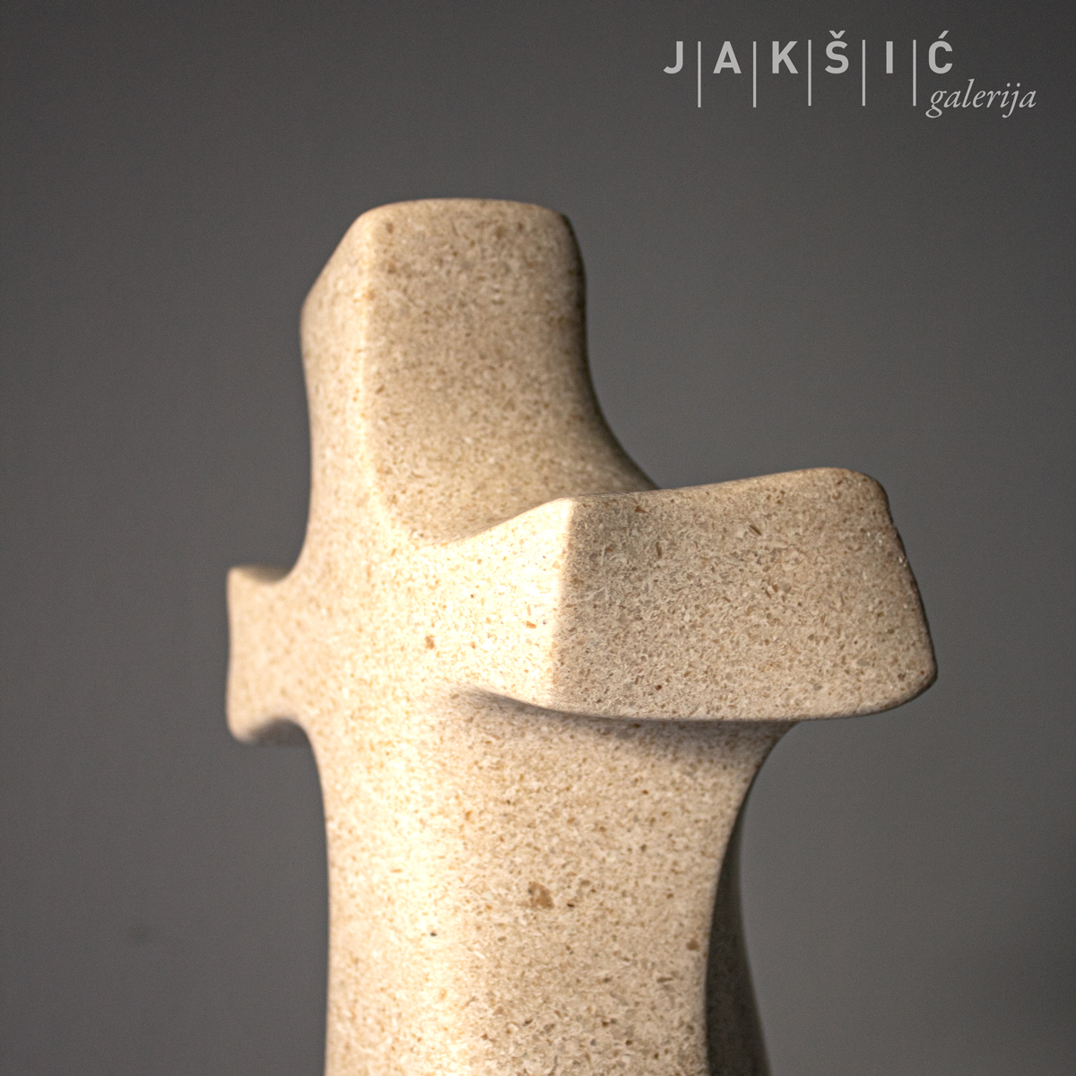 U Jakšić galeriji predstavljamo novu skulpturu našeg akademskog kipara Lovre Jakšić. Riječ je o djelu koje se jasno pozicionira kao skulptura katedrale, ali i kao snažna moderna skulptura na temu sakralne umjetnosti. Skulptura je izrađena od bijelog bračkog kamena u našoj radionici, a izložena je u Jakšić galeriji u Splitu.