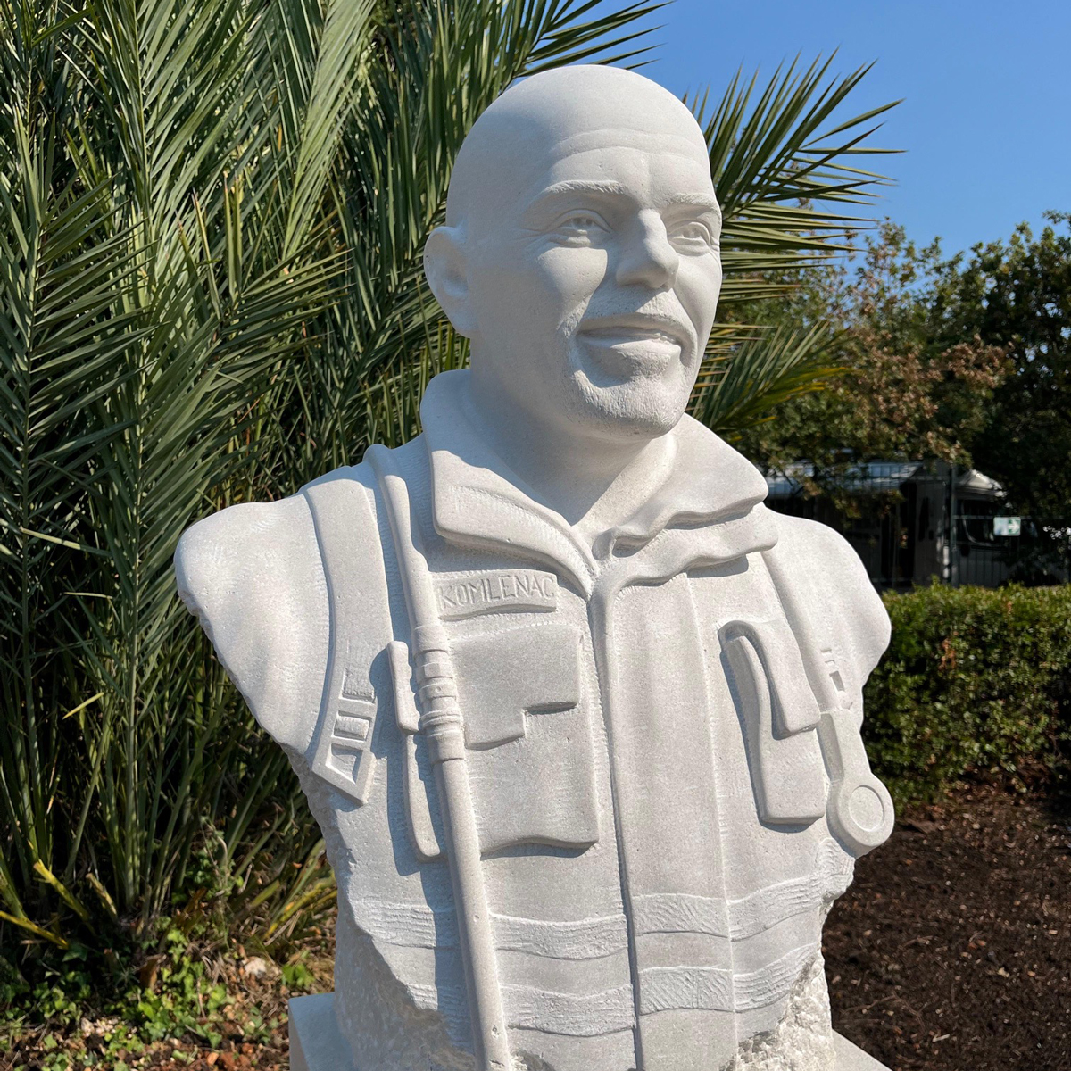 Naš kipar Lovre Jakšić dobio je zadatak od Grada Dubrovnika za izradu portreta Gorana Komlenca. Riječ je o portretu u kamenu, oblikovanom kao kamena bista, posvećenom poginulom vatrogascu. Spomenik je postavljen u mjestu njegova rođenja. Kao znak poštovanja, zahvalnosti i trajne uspomene.