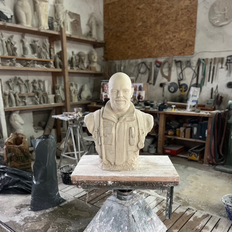 Proces izrade portreta za spomenik započinje modeliranjem u glini. U toj fazi definira se karakter lica, izraz i proporcije. Modeliranje zahtijeva preciznost, iskustvo i razumijevanje osobnosti portretirane osobe. Kada je klijent u potpunosti zadovoljan rezultatom, slijedi izrada gipsanog negativa glinene figure. Iz negativa se potom izrađuje gipsani pozitiv. Taj gipsani model postaje temelj za daljnju izradu skulpture u kamenu.